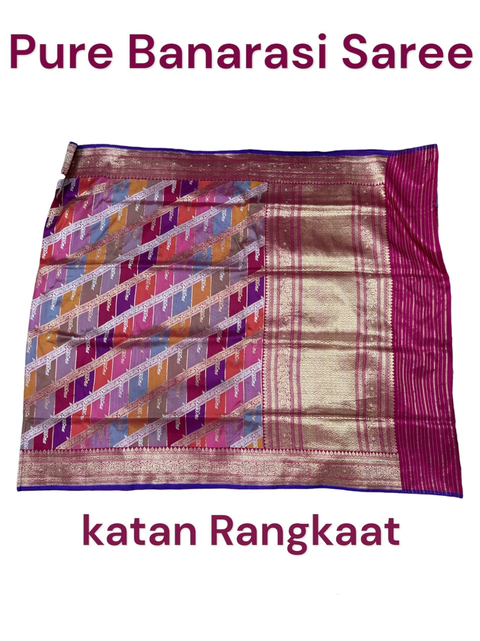 pure katan silk rangkaat saree with beautiful border with length of 5.50 meters and blouse with length of 1 meter
