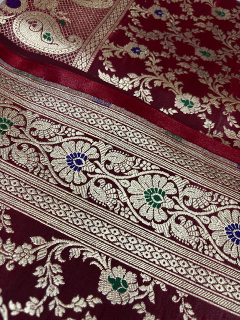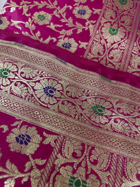 katan meenadaar dupatta having beautiful meena colours with black body and beautiful gold zari length 2.50 meter